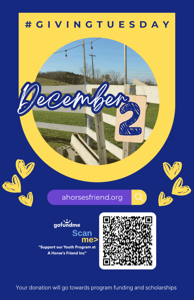This Giving Tuesday, we invite you to help lift up A Horse’s Friend, Inc. as part of this incredible day of local generosity.